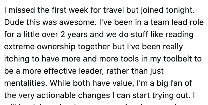 This is for those that want to fill in the gap of going from individual contributor to manager.
